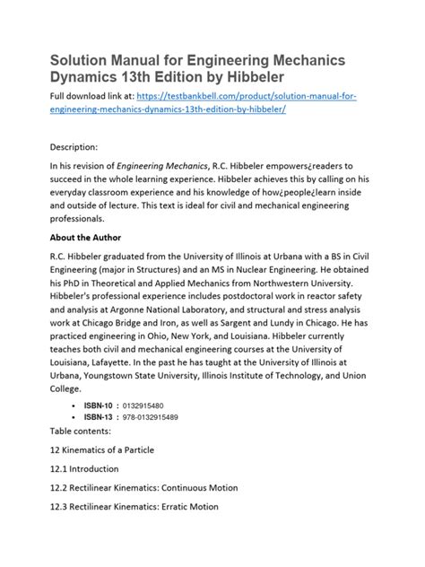 Download engineering mechanics dynamics 13th edition solution manual pdf Reader By Click Button. engineering mechanics dynamics 13th edition solution manual pdf it’s easy to recommend a new book category such as Novel, journal, comic, magazin, ect. You see it and you just know that the designer is also an author and understands the challenges involved with having a good book. You can easy klick for detailing book and you can read it online, even you can download it